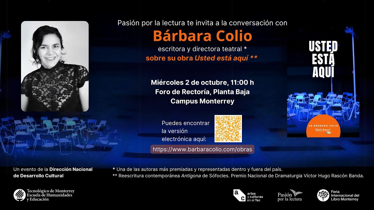Pasión por la lectura en conjunto con Cátedra Alfonso Reyes traen para ti la presentación de la obra "Usted no está aquí" de Bárbara Colio.