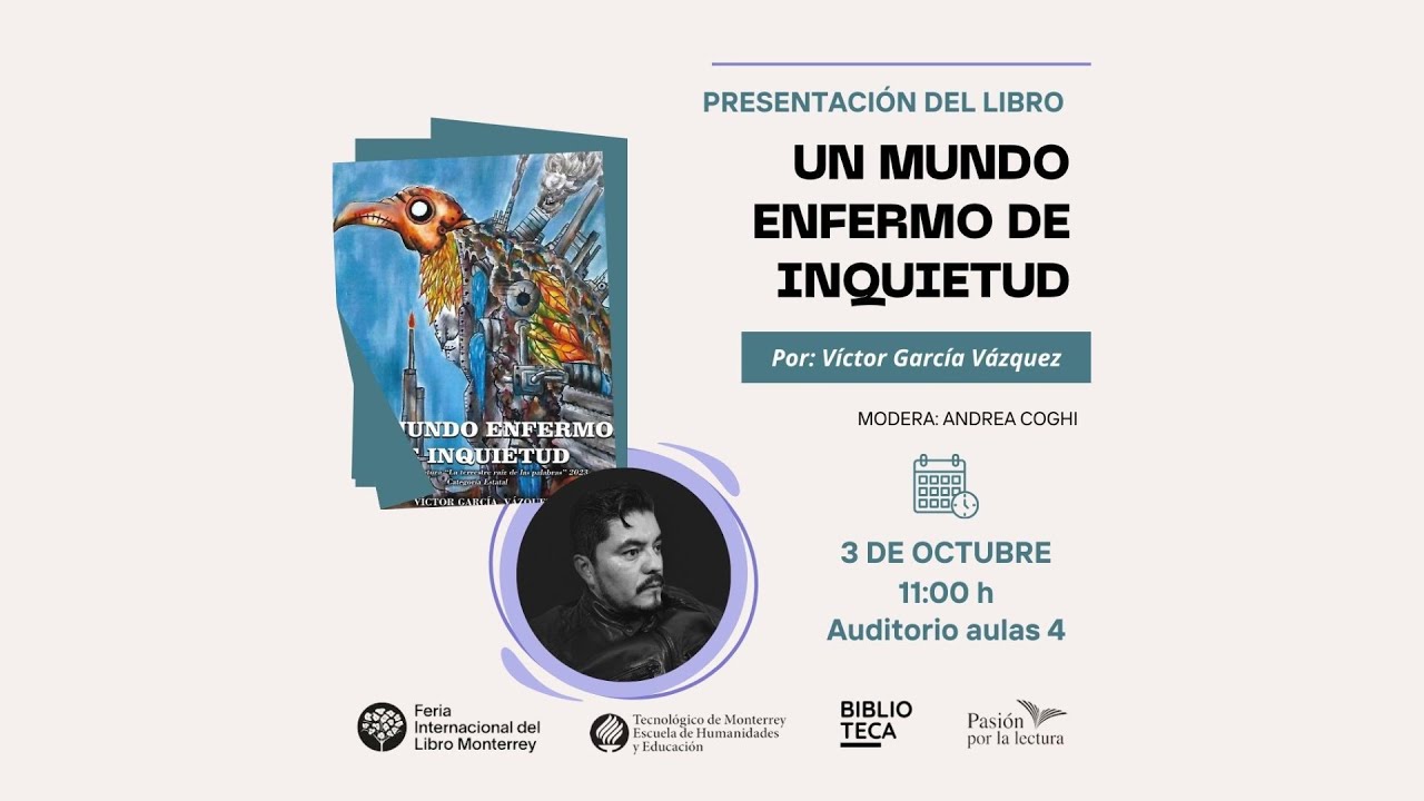 Pasión por la lectura en conjunto con BiblioTEC y Feria Internacional del Libro Monterrey les comparten la presentación del libro "Un mundo enfermo de inquietud" de Víctor García Vázquez.