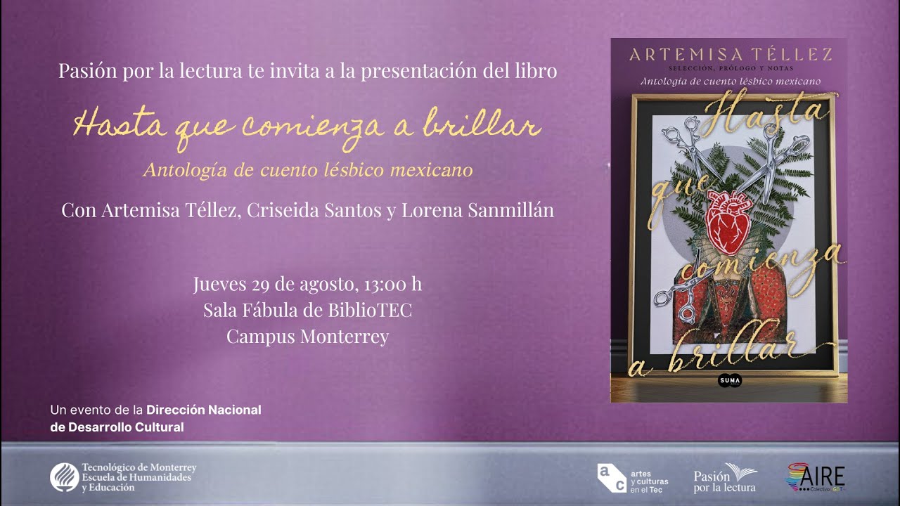 Pasión por la lectura en colaboración con AIRE - Asociación por la Inclusión, Respeto y Equidad del Tecnológico de Monterrey comparten la presentación del libro "Hasta que comienza a brillar. Antología de cuento lésbico mexicano" de Artemisa Téllez.
